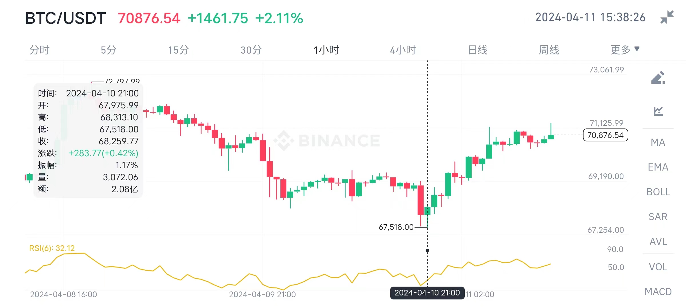 受此消息影响,美股四大指数集体下跌。而加密市场方面,比特币在昨晚消息公布后快速下杀2%至67518美元,不过随后开启震荡上涨,今(11)晨六点多一度又站上7.1万美元,近24小时反而逆势上涨了2.6%,展现惊人的韧性。以太坊与比特币走势相同,昨晚最低来到3411美元后,当下已回升至3500美元以上。