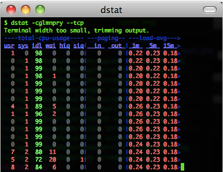 dstat 显示了 cpu 使用情况,磁盘 io 情况,网络发包情况和换页情况,输出是彩色的,可读性较强,相对于 vmstat 和iostat 的输入更加详细且较为直观。在使用时,直接输入命令即可,当然也可以使用特定参数。