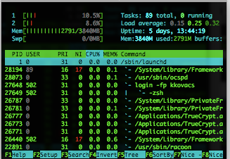 htop 是 Linux 系统中的一个互动的进程查看器,一个文本模式的应用程序(在控制台或者X终端中),需要 ncurses。