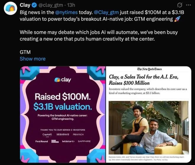 在销售领域,AI是否正在取代人类?纽约初创公司Clay以1亿美元的最新融资和31亿美元估值给出了不同答案——它正在用AI创造新职业。