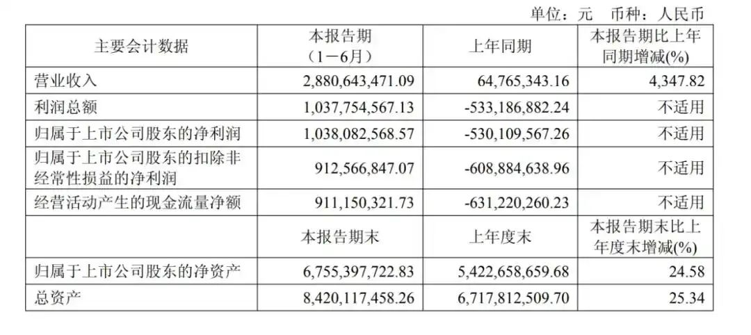 寒武纪股价飙升的背后,是业绩的爆发式增长。2025年上半年,寒武纪营业收入28.81亿元,同比增长4347.82%;实现净利润10.38亿元,同比扭亏。