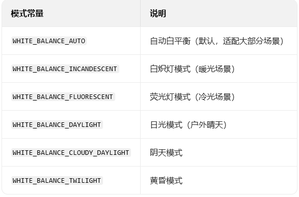 用于矫正画满色温 param.getSupportedWhiteBalance()获取支持的模式