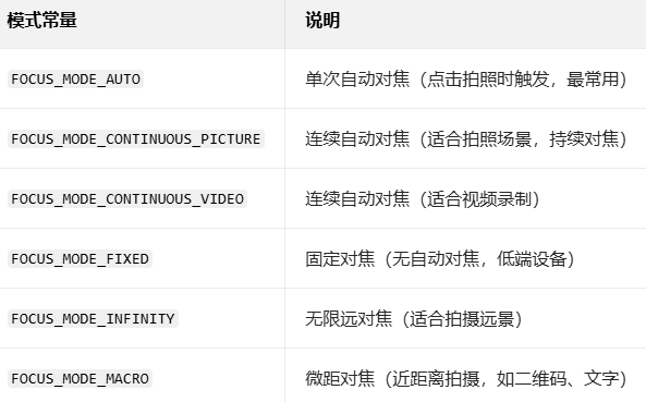 getSupportedFocusModes()获得