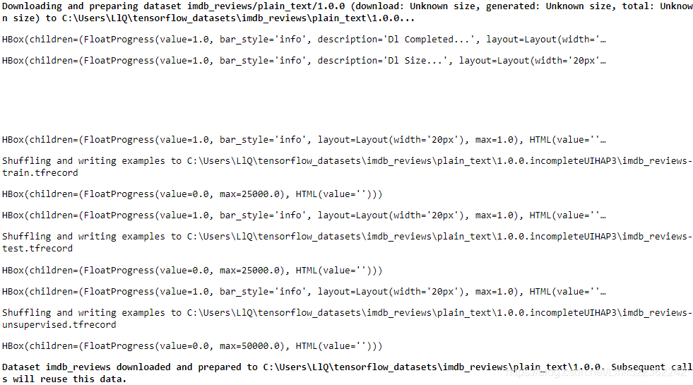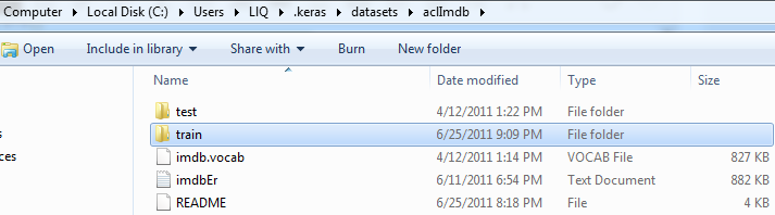 from pathlib import Path from tensorflow import keras DOWNLOAD_ROOT = "http://ai.stanford.edu/~amaas/data/sentiment/" FILENAME = "aclImdb_v1.tar.gz" filepath = keras.utils.get_file(FILENAME, DOWNLOAD_ROOT + FILENAME, extract=True) path = Path(filepath).parent / "aclImdb" path -