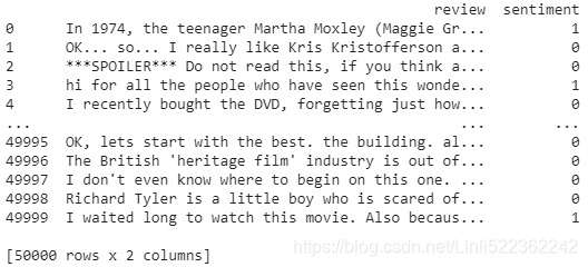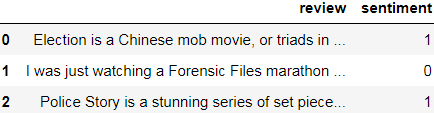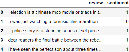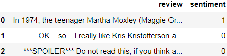 First, we are going to load the dataset into a pandas DataFrame using the local movie_data.csv file of the movie reviews that we created at the beginning of this chapter: