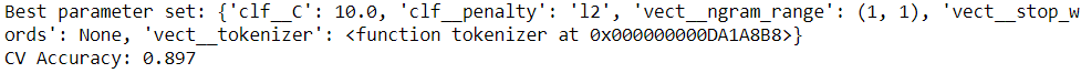 As you can see, the accuracy of the model is 61 percent, slightly below the accuracy that we achieved in the previous section using the grid search for hyperparameter tuning. However, out-of-core learning is very memory efficient and it took less than a minute to complete. Finally, we can use the last 5,000 documents to update our model: