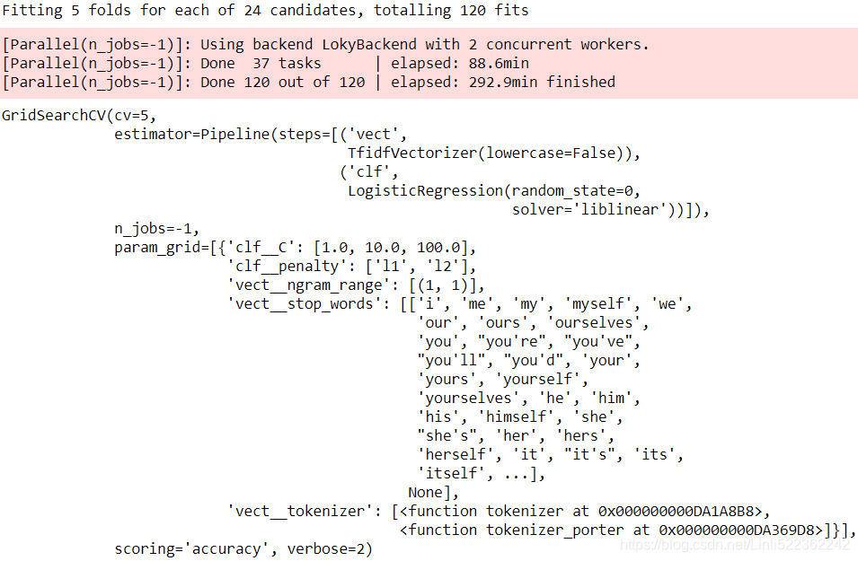 Again, we made use of the PyPrind package in order to estimate the progress of our learning algorithm. We initialized the progress bar object with 45 iterations and, in the following for loop, we iterated over 45 mini-batches of documents where each mini-batch consists of 1,000 documents. ![]()