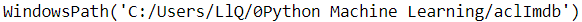 #Path(os.getcwd()) ==> Path(os.getcwd()) WindowsPath('C:/Users/LlQ/0Python Machine Learning')