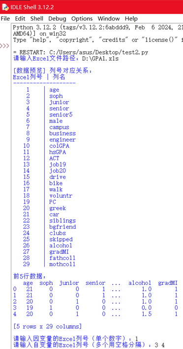 y_col = int(input("\n请输入因变量的Excel列号(单个数字):")) - 1