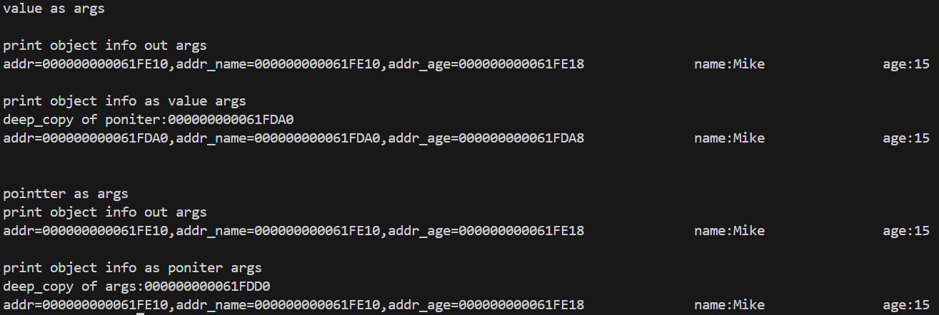 addr=000000000061FE10,addr_name=000000000061FE10,addr_age=000000000061FE18 name:Mike age:15