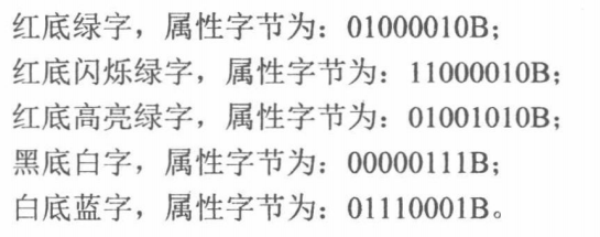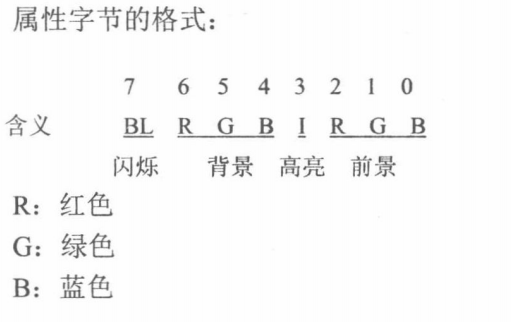 在80×25彩色字符模式下,显示器可以显示25行,每行80个字符,每个字符可以有256种属性(背景色、前景色、闪烁、高亮等组合信息)。
