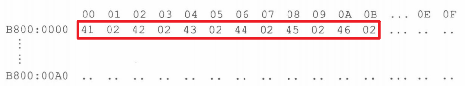 可以看出,在显示缓冲区中,偶地址存放字符,奇地址存放字符的颜色属性。