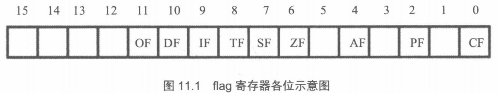 flag寄存器的1、3、5、12、13、14、15位在8086CPU中没有使用,不具有任何含义。 0、2、4、6、7、8、9、10、11位都具有特殊的含义。
