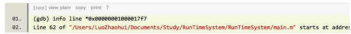 比如 "info line *内存地址" 可以获取内存地址所在的代码行相关信息:
