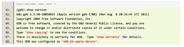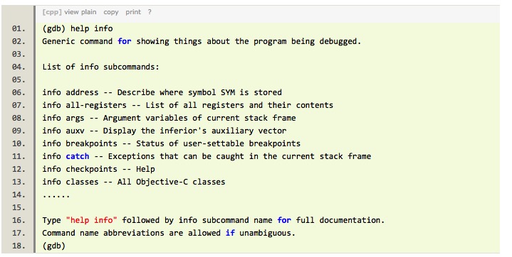 XCode 内置GDB,我们可以在命令行中使用 GDB 命令来调试我们的程序。下面将介绍一些常用的命令以及调试技巧。