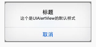 UIAlertController *alertController = [UIAlertController alertControllerWithTitle:@"标题" message:@"这个是UIAlertController的默认样式" preferredStyle:UIAlertControllerStyleAlert]; |