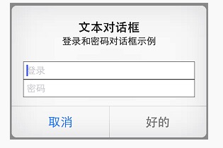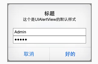 您也可以通过更改UIAlertView的alertViewStyle属性来实现输入文字、密码甚至登录框的效果。