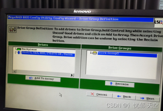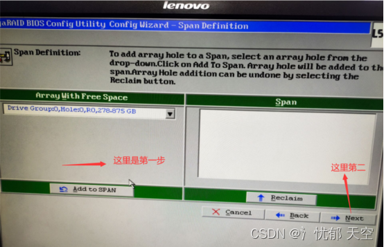 点击【Add to SPAN】,将刚才创建好的磁盘组加入到右侧方框内,然后点击【Next】下一步