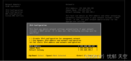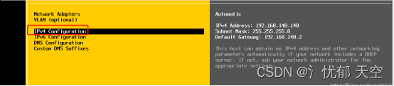 选中IPv4 Configuration回车进入设置Esxi1主机的管理IP地址