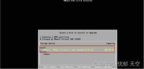 选择需要把Esxi安装到哪个硬盘上并回车执行