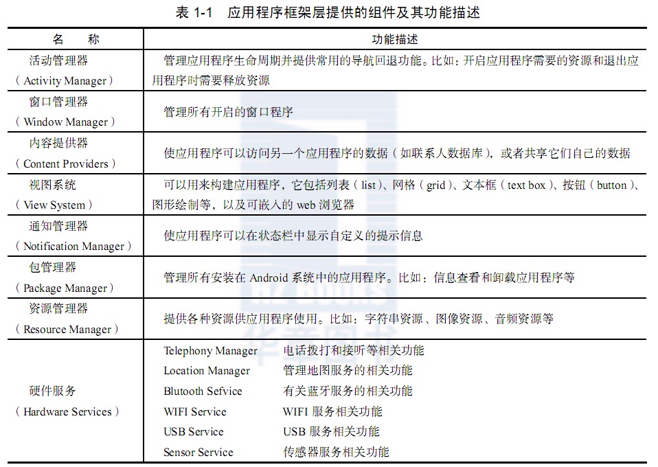 (Application Framework) 、系统运行库层(Libraries和 Android Runtime)和