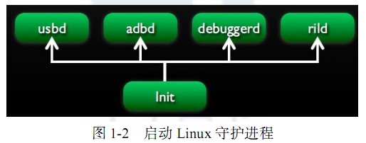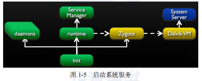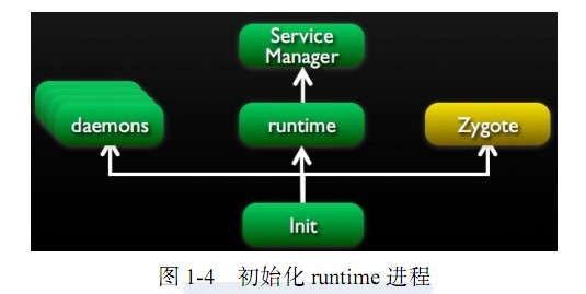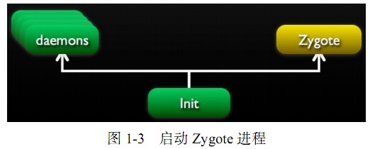 在启动 Linux守护进程的同时还需要启动 Zygote进程,如图 1-3所示。它主要包括以下需要启动和