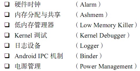 Android 系统。这些驱动又主要包括设备驱动和 Android专用驱动。