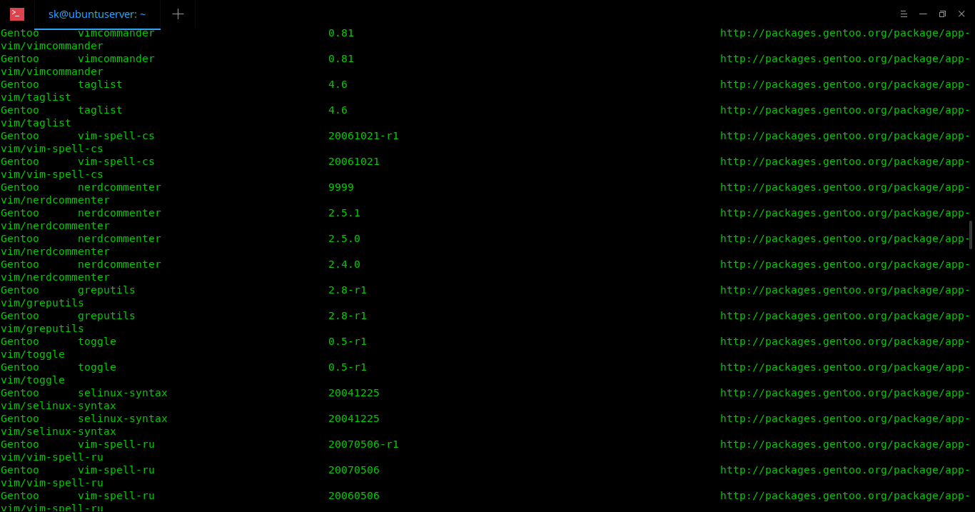 $ whohas vim|sort|grep" vim" $ whohas vim|sort|grep"vim " $ whohas vim|sort|grep" vim "