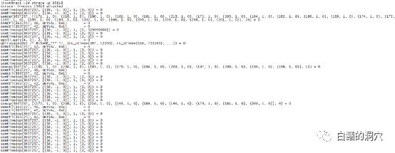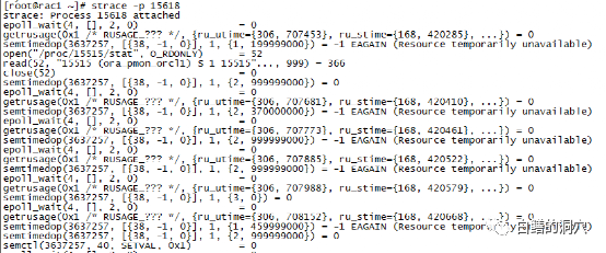 通过strace看lgwr,也只是在做一些信号量方面的操作。我们再来看看空闲时的LGnn。