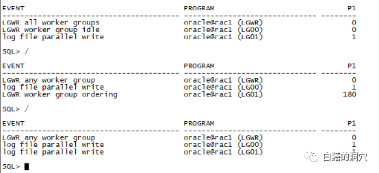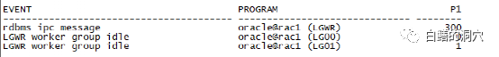 我这个环境的CPU_COUNT是16,而每个实例的Redo Strand最小值是2,因此启动实例的时候也启动了2个LGWR worker,这说明数据库实例有两个LGWR worker group,当系统空闲,没有什么需要写入的REDO数据的时候,LGnn都在等待空闲等待事件LGWR worker group idle,而lgwr进程在等待rdbms ipc message。