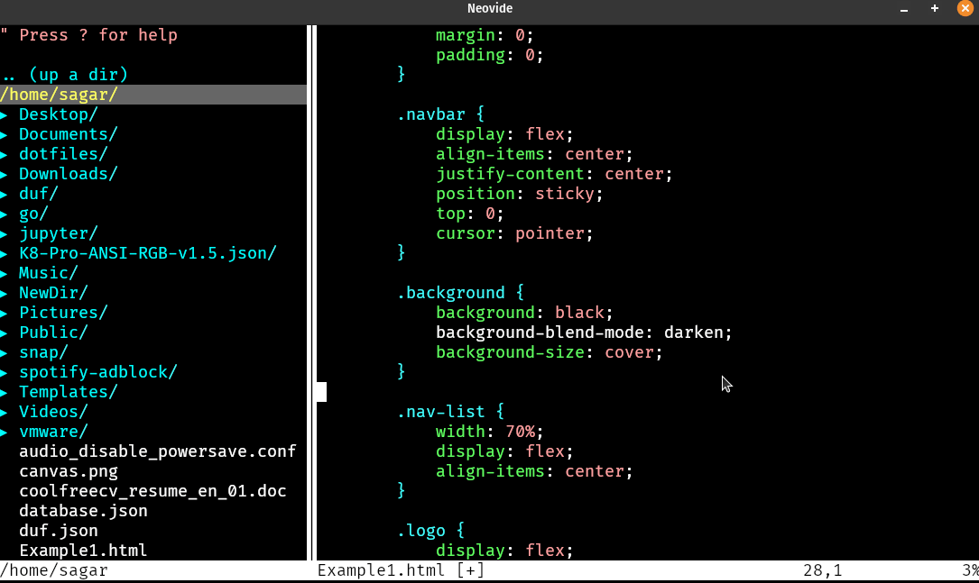 顾名思义,Neovim Qt 是用 Qt5 库构建的,你会经常看到它在 KDE 中使用。它没有太多花哨的东西,只是增加了一些额外的 GUI 功能,如多个标签,自动制表符补完等。