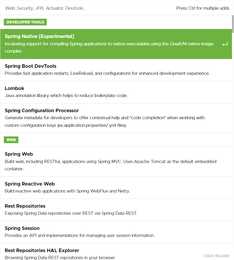 按照要求,左侧选择web,然后在中间选择Spring Web即可,选完右侧就出现了新的内容项,这就表示勾选成功了