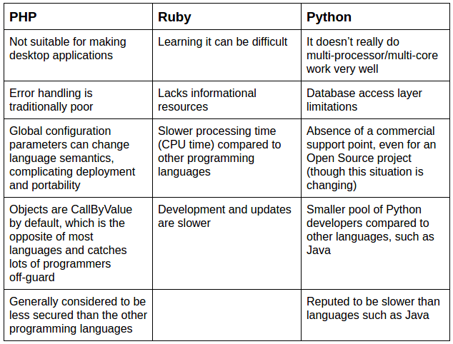 本文对比了PHP、Python和Ruby三种编程语言在市场份额、主流网站使用情况、可用性、学习曲线、人气、性能、话题性、工作岗位及薪水等方面的表现。