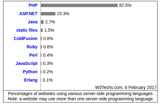 2、PHP vs Python vs Ruby: 主流网站使用情况