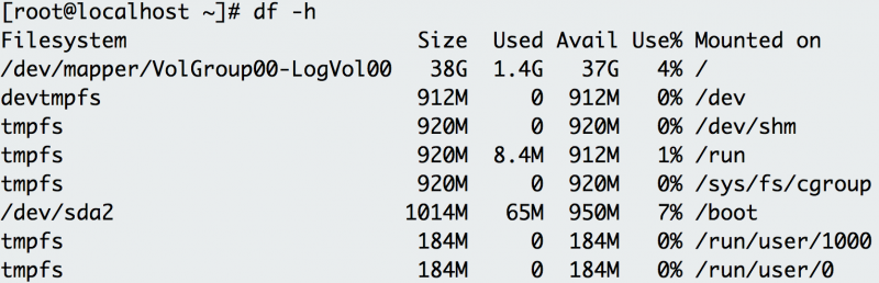-h 选项表示以可读性较高的方式来显示信息,上面的例子表示这个主机具有大量的磁盘空间。
