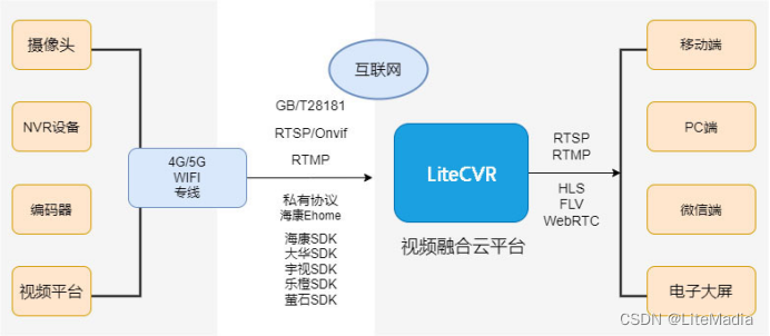 LiteCVR视频融合云服务基于云边端一体化架构,具有强大的数据接入、处理及分发能力,平台支持海量视频汇聚管理,可提供视频监控直播、云端录像、云存储、录像检索与回看、智能告警、平台级联、语音对讲、智能分析等视频能力。