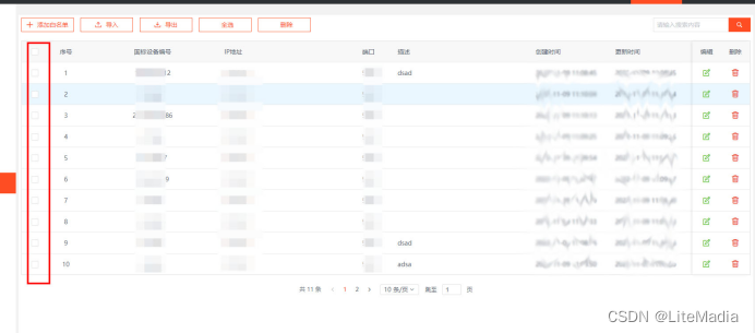 LiteCVR视频融合平台近期优化了白名单功能,新增了批量删除选项,提升了用户在大量设备管理时的安全性和便利性。该平台具备强大的数据接入和处理能力,支持多种设备和协议接入,广泛应用在安防、安监等多个场景。