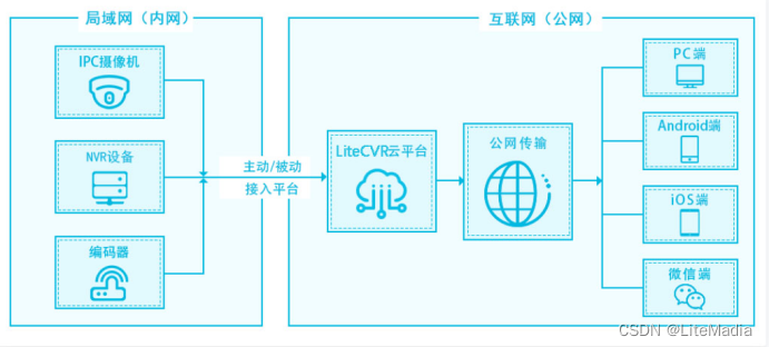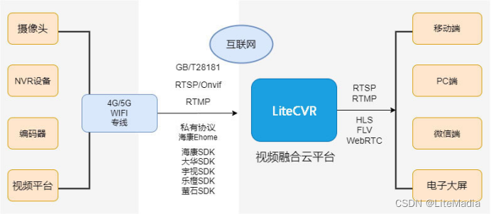LiteCVR视频融合平台基于云边端架构,具备很灵活的云边调度能力,可解决视频监控领域中海量设备接入、边端资源异构、网络通信不稳定、统一运维管理复杂等问题。平台能提供云、边、端分布式海量视频资源的统一管理与运维,从而实现数据采集、处理、汇聚、分析、存储、管理等全环节的视频能力。LiteCVR平台的应用场景也十分广泛,如:智慧工地、智慧校园、智慧社区、智慧楼宇等。