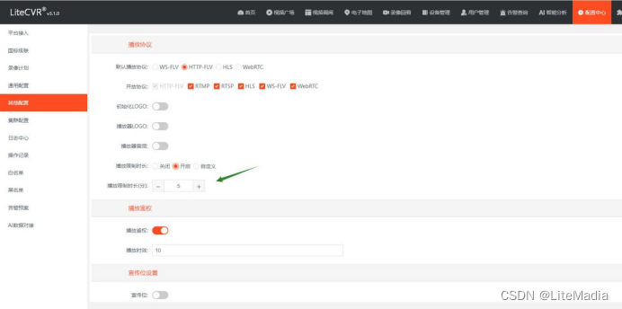 2)新版本LiteCVR(V3.0)在配置中心中,针对物联网卡接入的设备拉流时间进行了限制,超过了拉流时间后,平台将不再取流,避免出现不必要的网卡流量消耗。