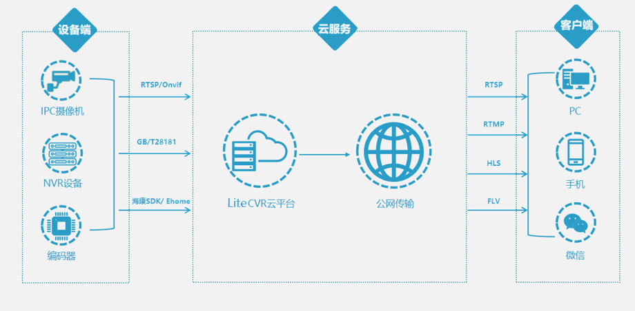 随着安防市场的快速扩大发展,LiteCVR以其快速纵深的视频能力已成为安防行业主流需求平台。该平台支持多种协议方式接入,包括国标GB/T28181协议、RTMP、RTSP/Onvif等市场主流标准协议,以及海康Ehome、海康SDK、大华SDK、华为SDK、宇视SDK、乐橙SDK、萤石SDK等厂家私有协议和SDK。