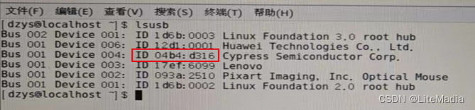 首先确认机器是否识别到加密狗设备。在Linux系统中,可以使用lsusb命令进行查看;在Windows系统中,可以通过设备管理器找到USB输入设备,查看事件信息,加密狗的编号是VID_04B4&PID_D316。