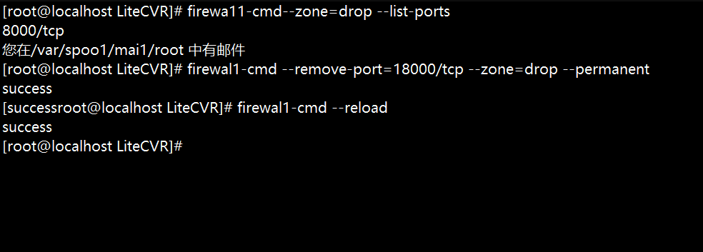 3)在完成移除操作后,我们的技术人员重新加载了防火墙配置。这样可以确保新的设置得到应用,并且之前被阻止的连接请求能够被顺利通过。我们的技术人员再次确认drop策略中是否还存在18000端口,这一次发现它已经成功地被移除了。