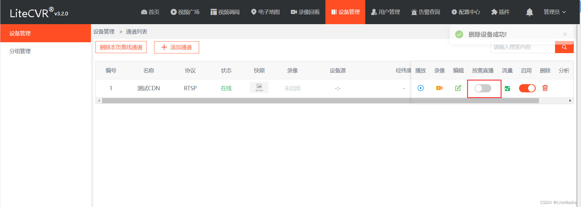 因此,在LiteCVR v3.2版本中,我们增加了CDN和按需开关取消绑定的功能,这样一来,用户就能更好地控制流量消耗,降低项目成本。