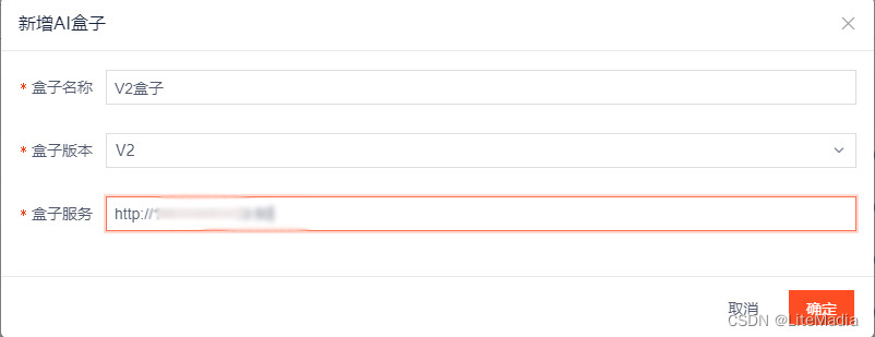 填写盒子服务的地址时,请注意格式为“http://盒子ip;prot”,并在前面加上当前平台的服务访问地址。