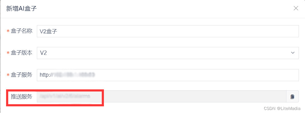 首先,在LiteCVR中添加AI算法的盒子,添加路径为“智能分析-新增盒”