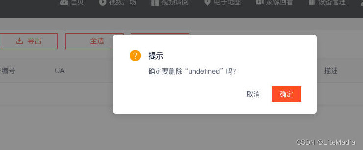经过分析,我们发现当在LiteCVR平台中删除没有“国标设备编号”的黑名单时,弹出的提示出现了异常。