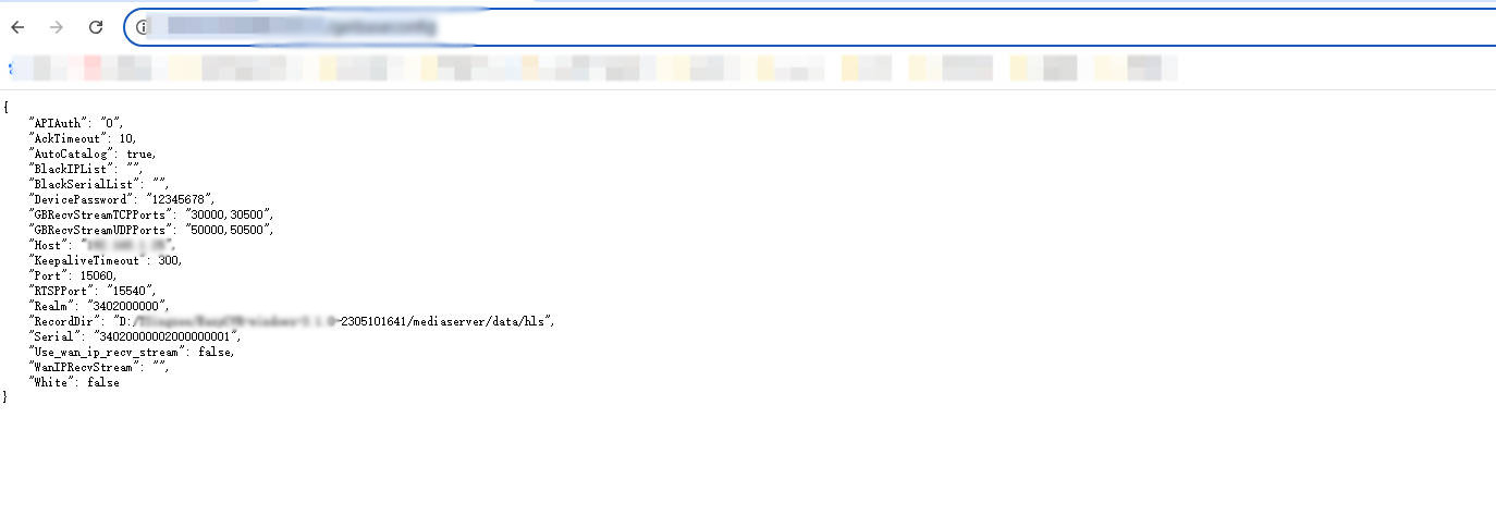 有使用者反馈,在现场部署了LiteCVR并开启了接口鉴权后,调用接口/api/v1/getbaseconfig,仍能获取到数据,如下图所示。