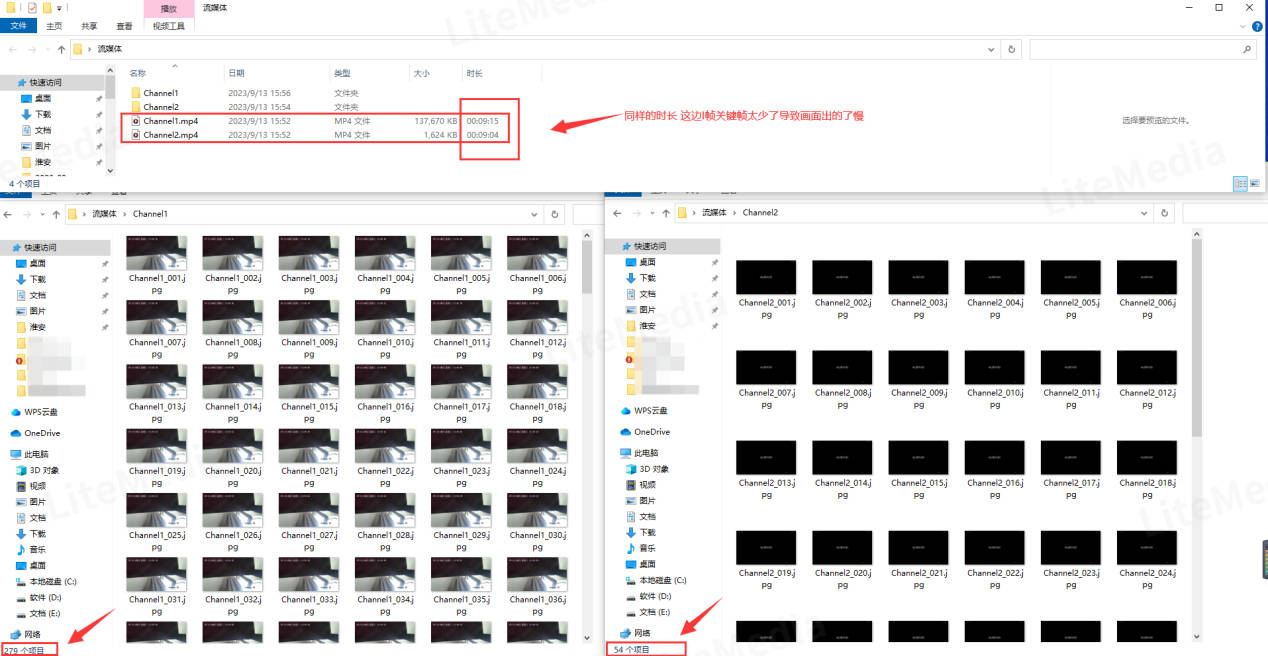 3)经过本地测试发现确实是视频源流的问题,测试9分钟才生成54个关键帧,正常按照该配置应该是2s一个关键帧,9分钟约为270多个,而现场只有50个,同样的时长,用户那边的关键帧太少所以导致画面播放缓慢。