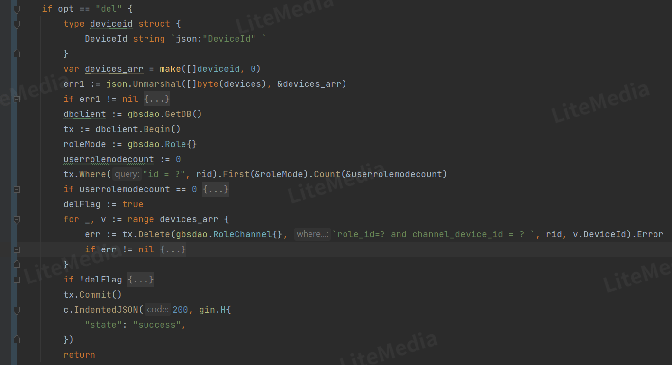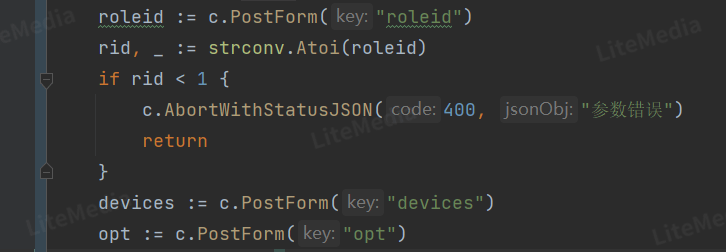 1)首先在前端需要传入角色id,设备id与操作类型opt:
