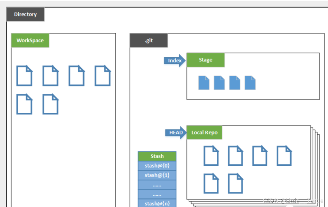 Repository:仓库区(或本地仓库),就是安全存放数据的位置,这里面有你提交到所有版本的数据。其中HEAD指向最新放入仓库的版本